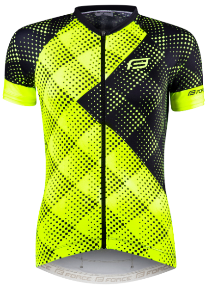 Åndbar og letvægts cykeltrøje til kvinder fra Force. Trøjen har en fuld længde lynlås, så den er nem at tage af og på, samt elastiske ærmer og trøje ende med silikone grippere, der altid sikrer det rette fit.