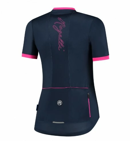 Jersey fra Rogelli Race Fit til kvinder. Modellen er lavet i Dynacool for en behagelig og komfortabel tur. Trøjen har elastisk mesh-stof på ryggen og siderne. Du får 3 baglommer og en ekstra baglomme med lynlås og vandafvisende egenskaber. Der er en silikonestrip i bunden, så den ikke glider op under kørslen. Der er refleks-detaljer for øget synlighed.