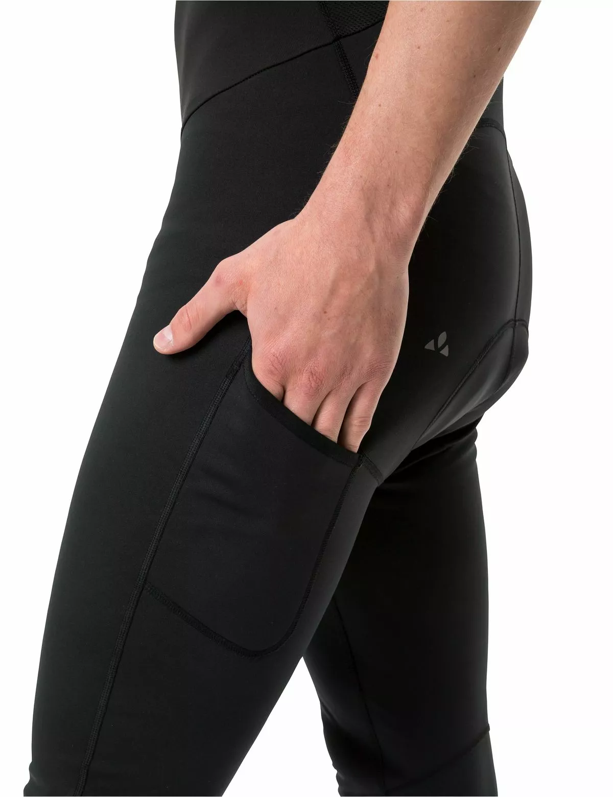 Der er en lille lomme på den ene side af bukserne, eksempelvis til en gel, bar eller lignende.